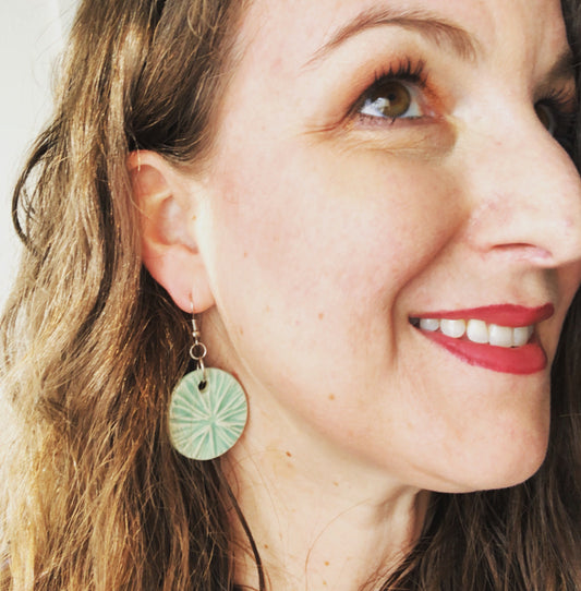 Aqua Coral Earrings with Handmade Ceramic Pendants