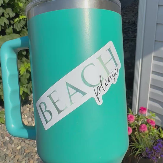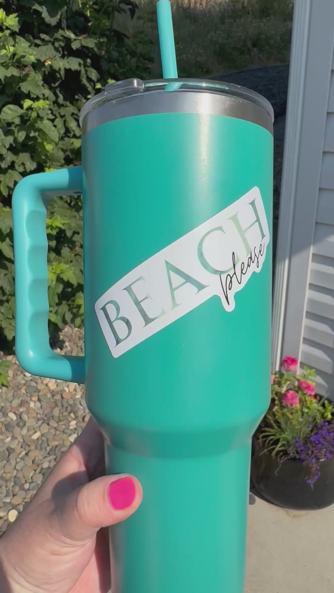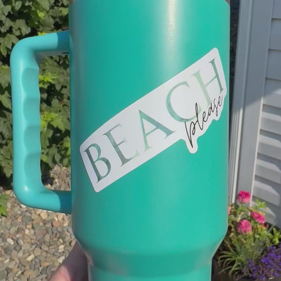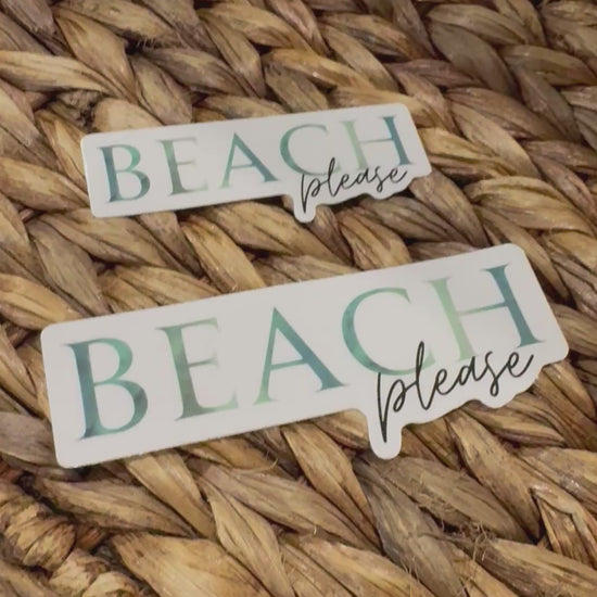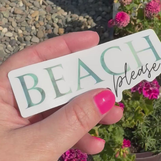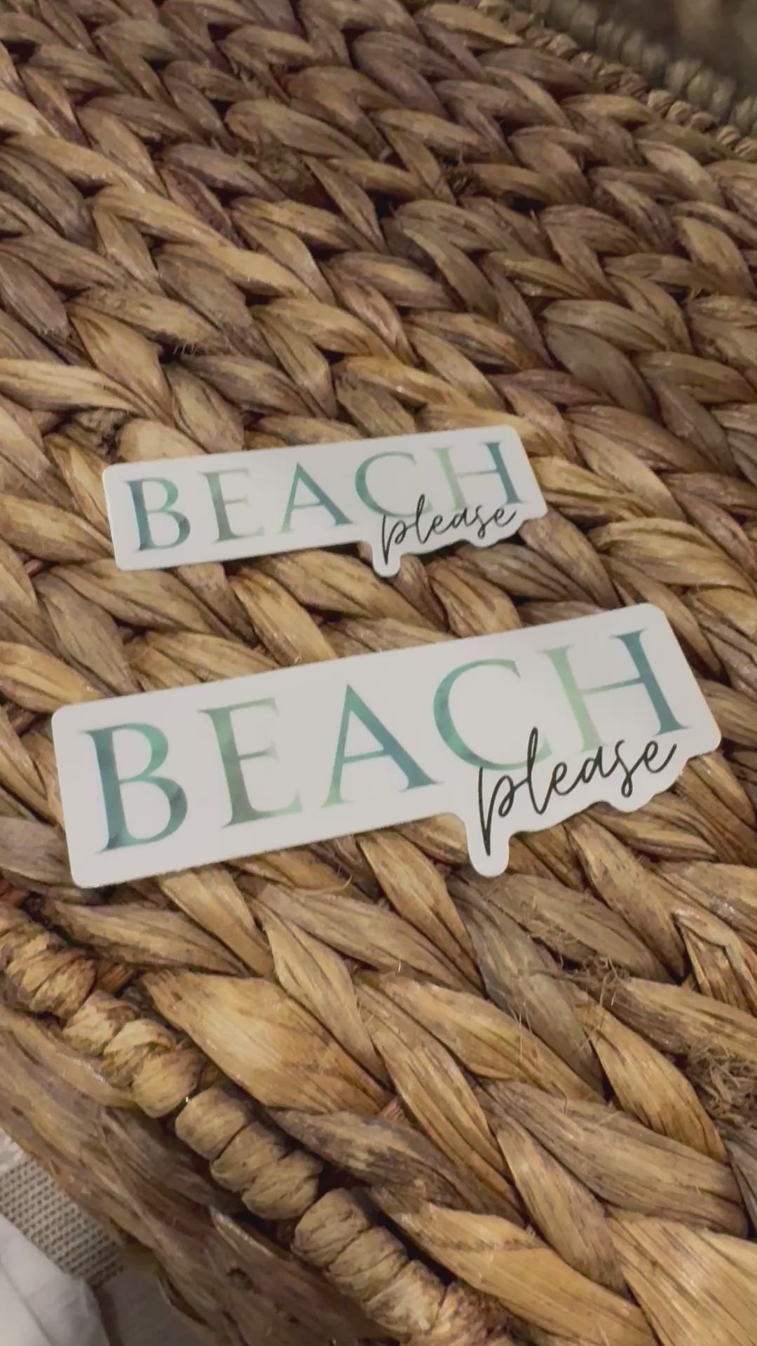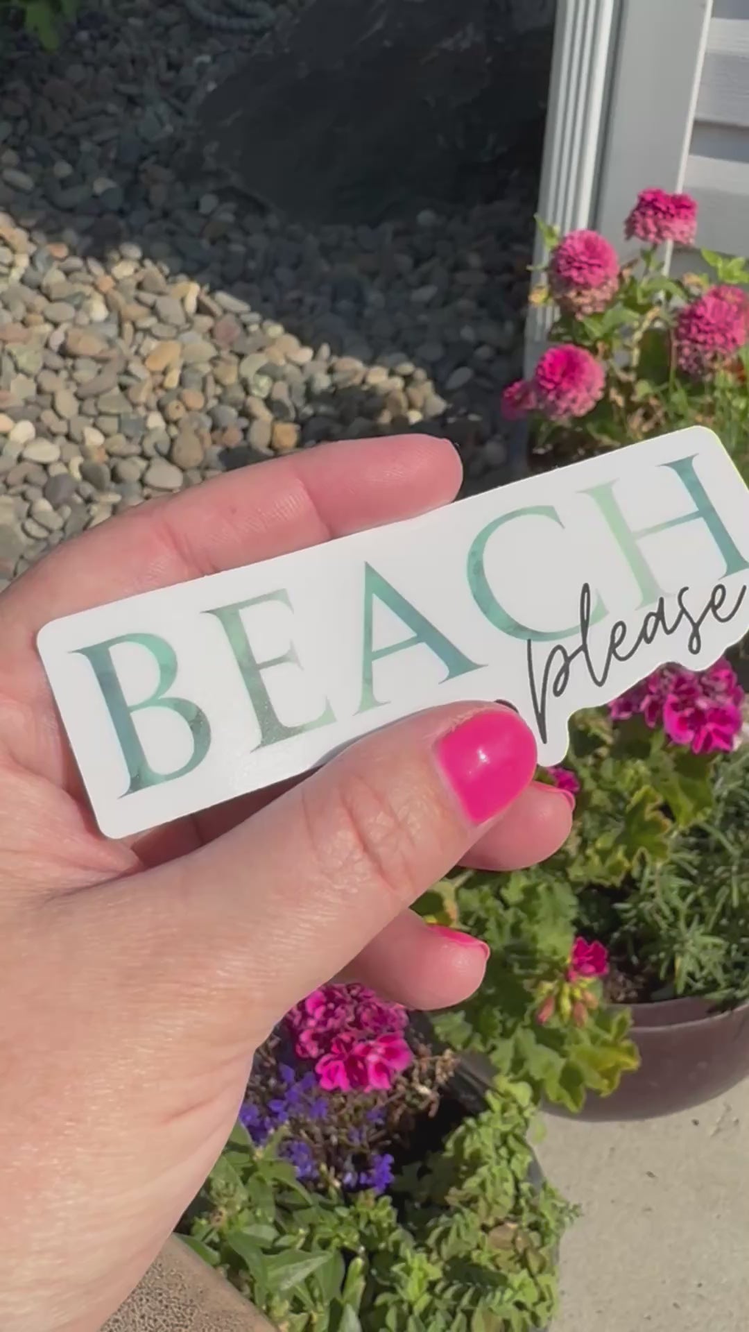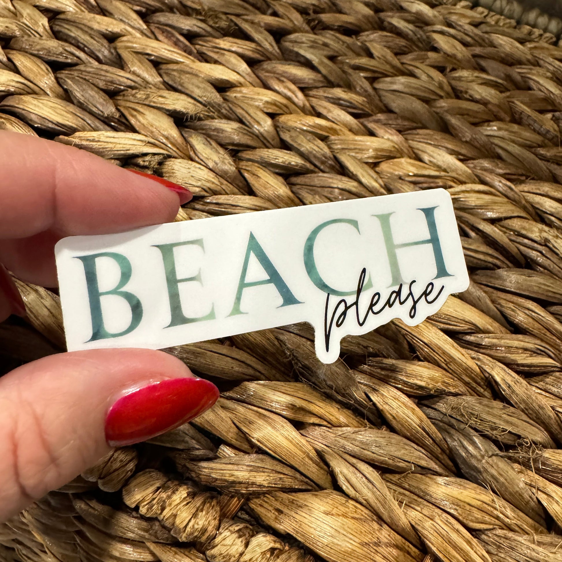 Beach PLEASE! This cute sticker is made with high-quality, waterproof vinyl with a gloss finish. Comes in 2 sizes - 3 or 4 inch length. Original design created by the artist. The big letters have a wash of beachy aquas and teals while the script is a crisp black for contrast.