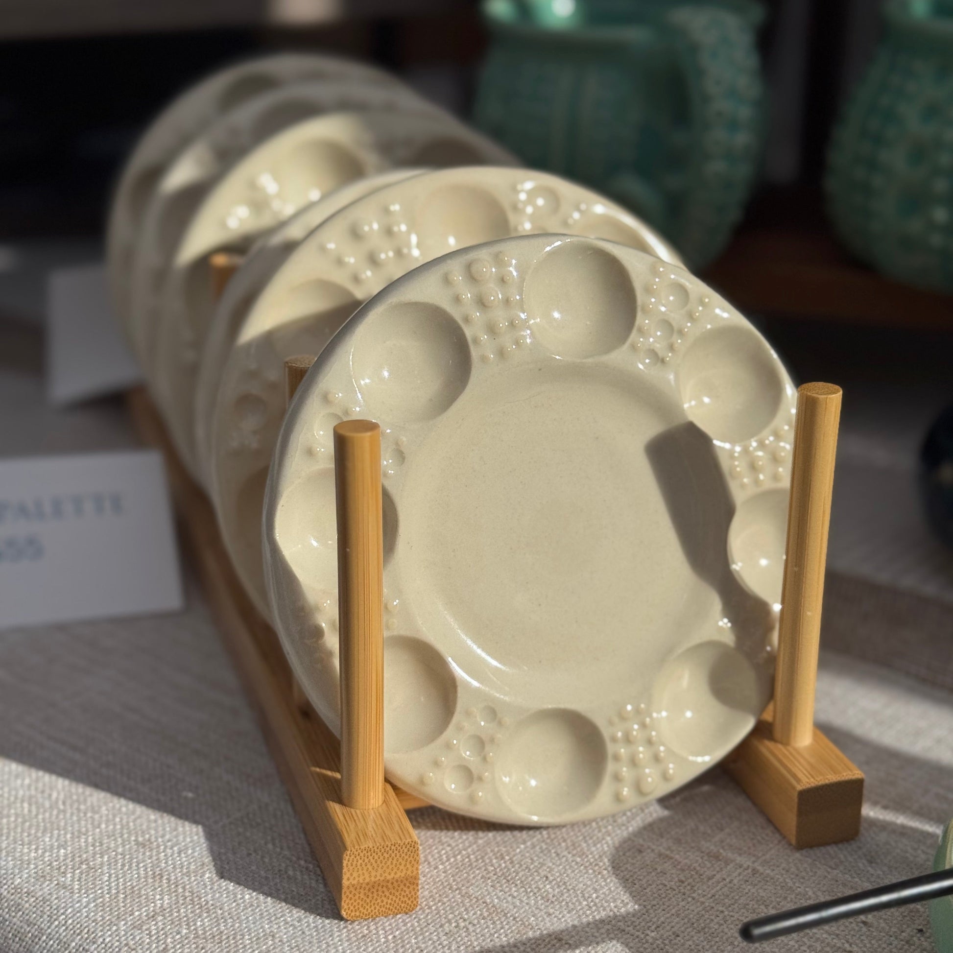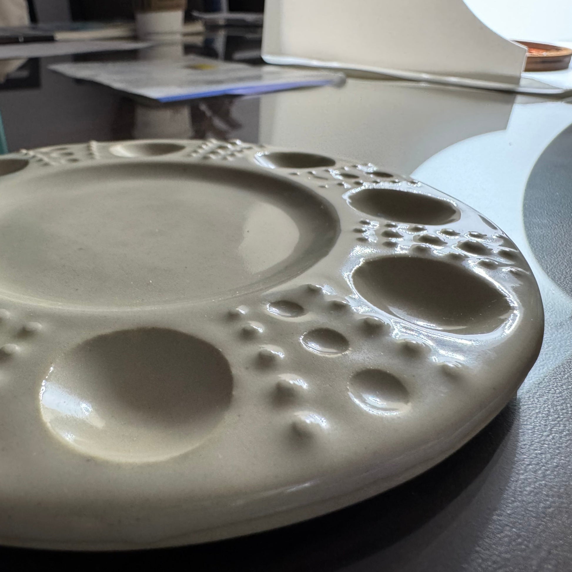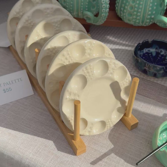 Ceramic paint palette with texture decoration inspired by a sea urchin shell. Great gift for the paint enthusiast in your life.